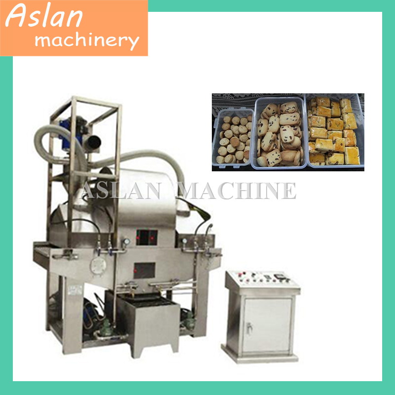 2. The machine adopts most advanced centrifugal device in the world. The centrifugal wheel revolves so fast that the oil on the wheel gains very great centrifugal force and atomized oil biscuit. The eight group of oil-spray device can regulate the volume and temperature of oil automatically and freely. This machine have the characteristics of low noise, energy saving, fine design, easy to be controlled and health.